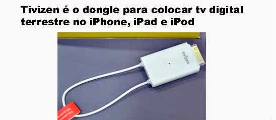 Na FNAC e na Saraiva foram as lojas em que me deparei com o dongle para os dispositivos da Apple, ele estava sendo vendido simpático preço de R$ 299,00. O dongle para iGadgets atende pelo nome de Tivizen,